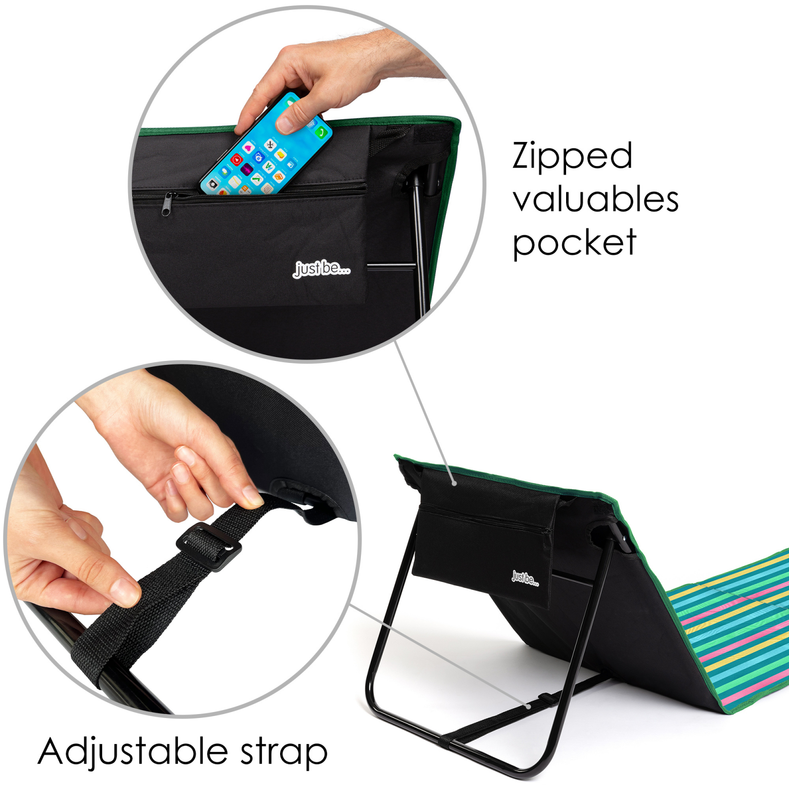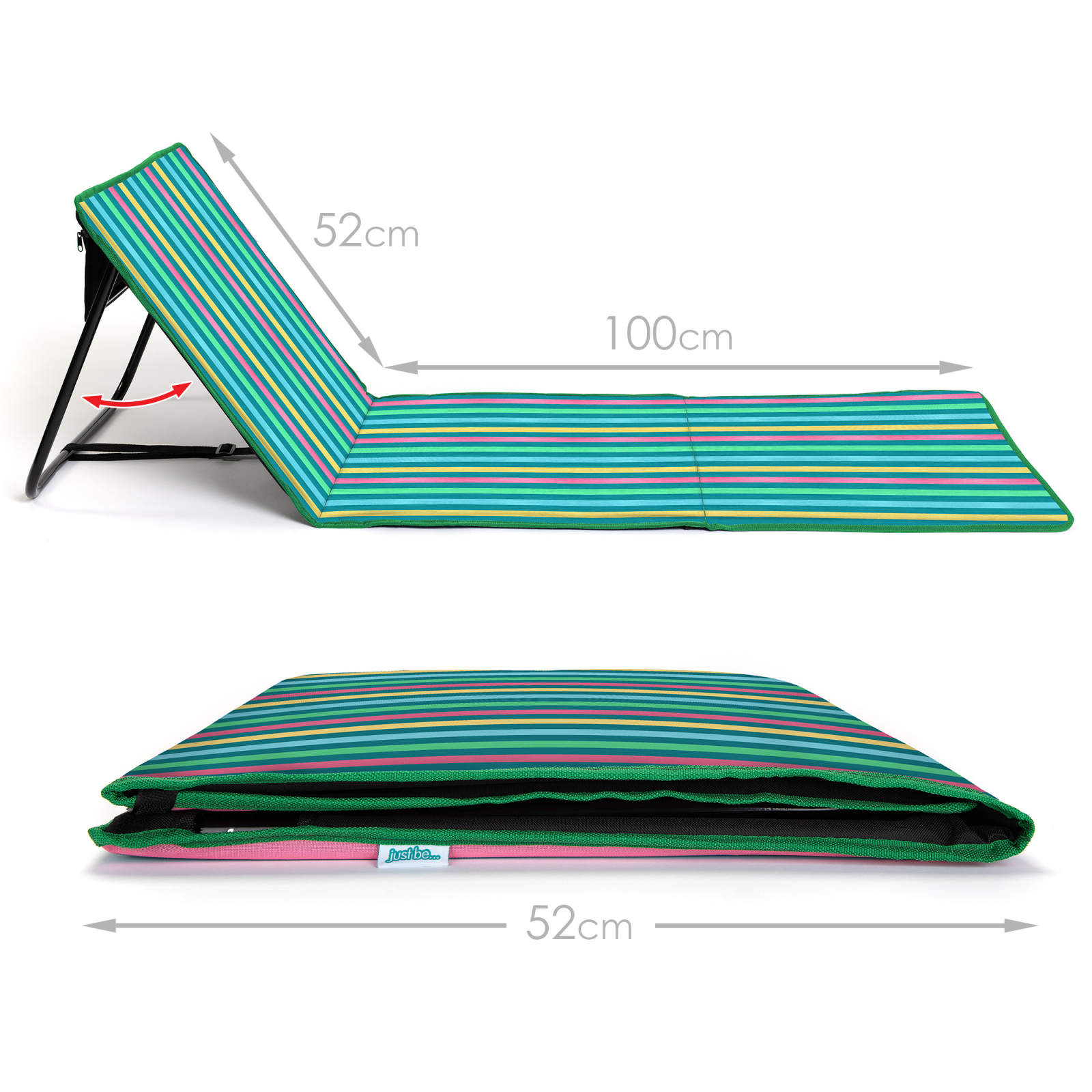 Descriere: Salteaua de plaja cu buzunar este ideala pentru relaxare la plaja, in parc, la un festival, sau, de ce nu, pentru a citi sau a face plaja in gradina. Fabricata din spuma la interior si o husa din poliester imprimat la exterior, care se curata prin stergere.Salteaua de plaja se poate inclina de la 100 cm pe orizonala, la 53 de cm atunci cand este rabatata. Salteaua este prevazuta cu o curea de umar pentru transport, un buzunar pentru depozitarea banilor, cheilor sau telefonului mobil si un cadru tubular usor de 15 mm pentru facilitarea transportului. Salteaua de plaja se pliaza pentru o solutie excelenta de economisire a spatiului pentru depozitarea acasa sau in masina. Dimensiuni: Lungimea scaunului intins: 100 cm (lungime totala: 153 cm) Lungimea saltelei inclinate: 53cm Inaltime: 45cm Latime: 52cm Dimensiuni pliata: 52 x 52cm Greutate: 1,4 kg