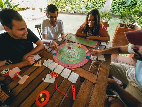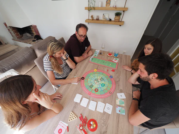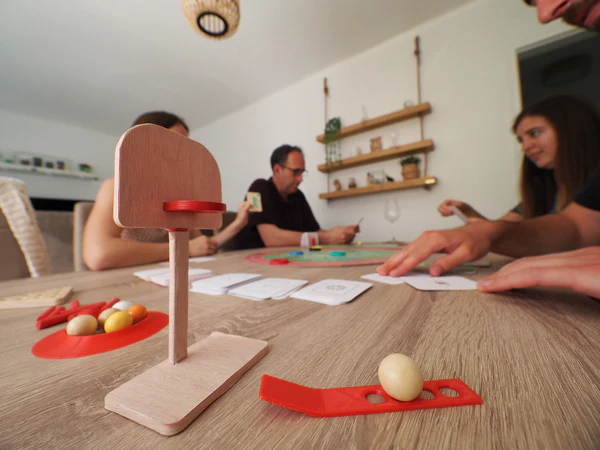 Distractie si competitie pentru intreaga familie! OLYMPLAKKS aduce peste 10 sporturi diferite direct pe masa ta de joc! Este jocul ideal pentru copii, adolescenti si adulti care adora competitia si provocarile sportive. Caracteristici principale: Numar de jucatori : 2 , 5 Varsta recomandata : 7 , 99 ani Sporturi incluse : Peste 10 sporturi Cum se joaca? Scopul: Acumularea a 100 de puncte prin trecerea probelor sportive. Fiecare jucator isi loveste discul pe tabla de joc si extrage o carte in functie de locul unde aterizeaza. Poti obtine fie o proba sportiva, fie puncte directe! Sporturi incluse: OLYMPLAKKS ofera o varietate impresionanta de sporturi, printre care: Baschet Hochei Fotbal Golf Bowling Escalada Saritura in inaltime ... si multe altele! Fiecare sport vine cu peste 100 de probe , astfel incat fiecare partida este o noua provocare. Potrivit pentru toate varstele Regulile sunt simple si usor de inteles, facand acest joc ideal pentru toate varstele, de la copii de 7 ani pana la seniori. OLYMPLAKKS este perfect pentru a fi jucat intre parinti si copii, frati, prieteni sau bunici si nepoti. Este o modalitate minunata de a petrece timp de calitate in familie! Cartonase de punctaj Jocul include cinci tipuri de cartonase , fiecare oferind o modalitate diferita de a castiga puncte: Cartonase cu intrebari sportive (individuale si de grup) Cartonase cu punctaj direct (pozitiv si negativ) Cartonase pentru a fura punctele adversarilor OLYMPLAKKS , Distractie Nesfarsita Acest joc nu ofera doar competitie, ci si indemanare si invatare prin sport. OLYMPLAKKS transforma orice intalnire intr-o adevarata olimpiada de familie, plina de provocari si rasete! Fii campionul familiei si descopera toate probele sportive incluse in OLYMPLAKKS ! Greutate : 1.5 kg Lungime : 32.5 cm Latime : 30.5 cm Inaltime : 6.3 cm Pentru instructiunile in limba romana dati click aici