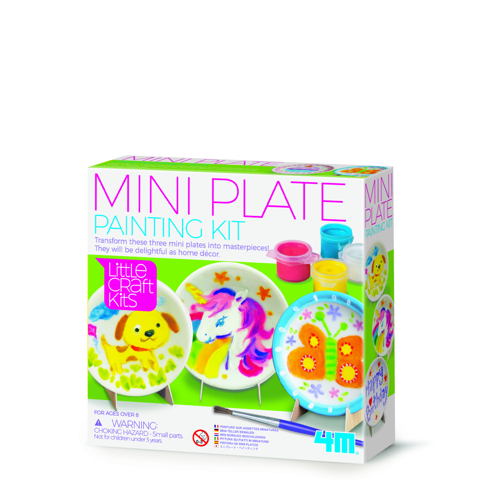 Transforma aceste trei mini farfurii in capodopere! Vor arata incantator in casa ta si vor face cadouri grozave pentru prietenii tai! Contine 3 farfurii simple din portelan (6 cm in diametru), 3 suporturi pentru carduri, 1 banda de vopsea si 1 pensula. Varsta 5+